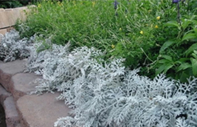 如果在地被邊緣使用金葉女貞、大葉黃楊等灌木,可能會出現(xiàn)露土、空白的現(xiàn)象。因為它們的苗子都是上部葉子較繁密,下部主要是干莖,葉子較少。在這種情況下,就需要一些低矮的、枝葉繁密的地被植物來鑲邊,避免裸土。