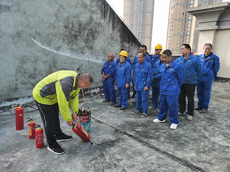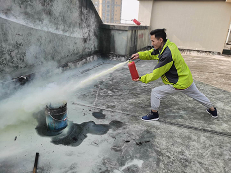 演練分為防火安全知識理論講解、室外滅火實戰(zhàn)兩部分。首先由我公司安全主管對現(xiàn)場員工進行列隊、整形然后進行相關(guān)知識的培訓,再由物業(yè)相關(guān)領(lǐng)導(dǎo)對現(xiàn)場工人提出具體的意見和操作要求。