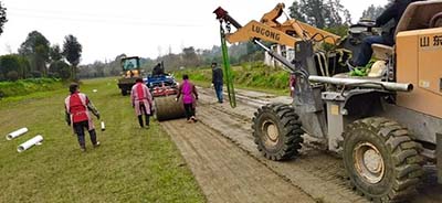 專業(yè)成就品質(zhì),小小的一塊足球場建造,尤其是草坪建植,需要大量的專業(yè)設(shè)備配套。大規(guī)格起草皮機、鋪草皮機、草坪多功能拖拉機、三聯(lián)滾刀剪草機、專業(yè)寬幅草坪打孔機、鋪沙機、草坪滾壓機,耙沙機、打藥機······