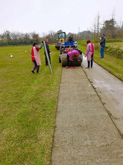 采用進口專業(yè)的大規(guī)格草皮卷起草皮機從基地起出草坪并打卷運輸至現(xiàn)場。