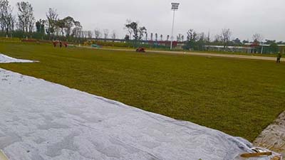 “蘭引三號”結(jié)縷草為暖季型草坪,冬季已經(jīng)進入休眠期。本項目屬于反季節(jié)施工,為保證草坪成活率,鋪植完成的草坪足球場還將采用覆沙、地膜覆蓋加溫等技術(shù)措施,以保證草坪的鋪植成活率。